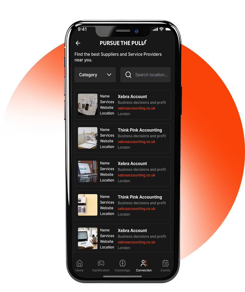 Discover a network of suppliers and service providers, including investors, copywriters, mentors, marketing experts, financial advisors, and accountants, to help you accelerate your growth.